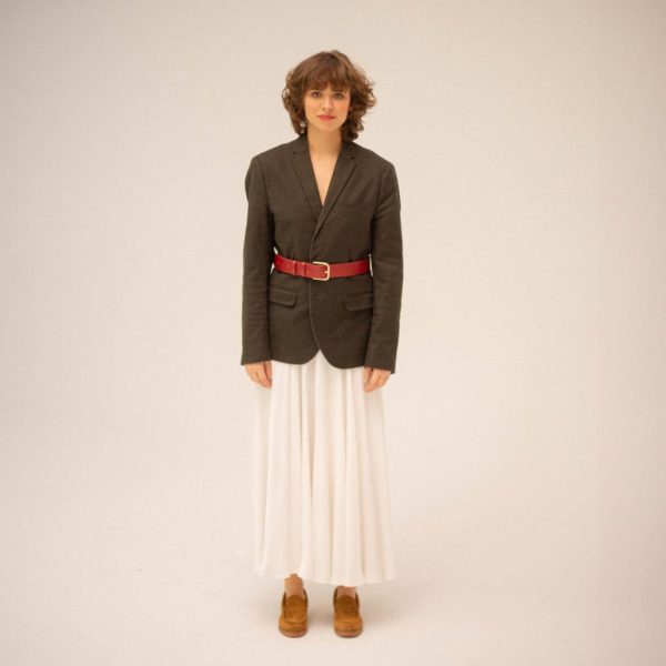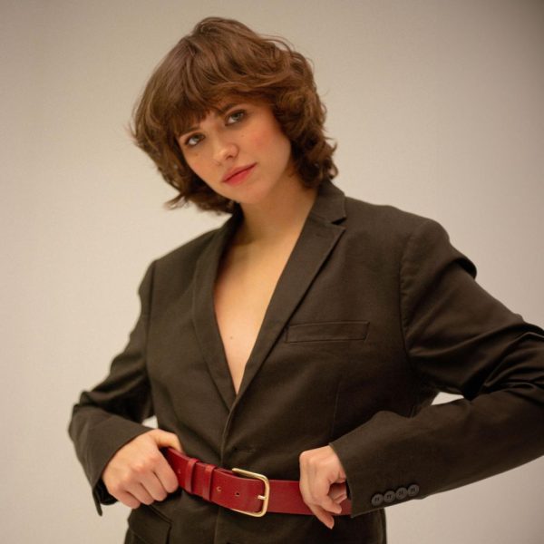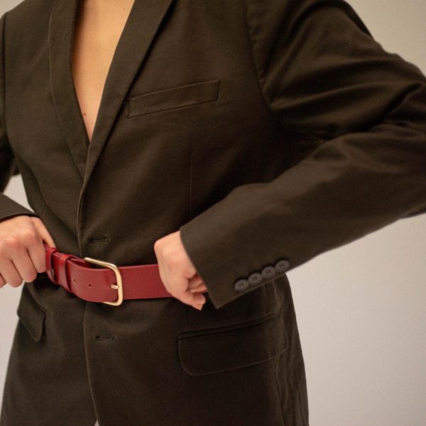 Wide women’s belt with a buckle, perfect for shaping a waistline.
