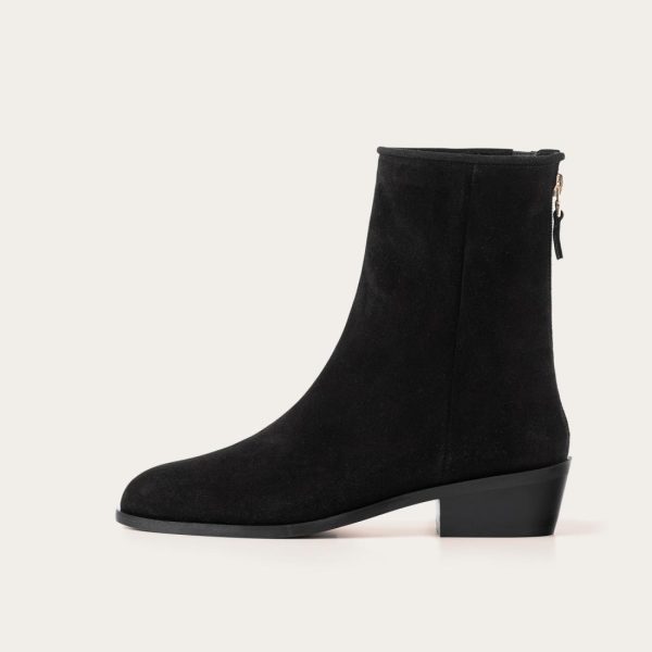 Sus is a classic ankle boot, finished with a zipper and a sewn-in rubber that adjusts the width of the upper. Simple and minimalistic, with low heels.