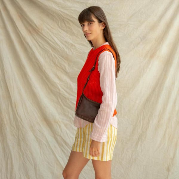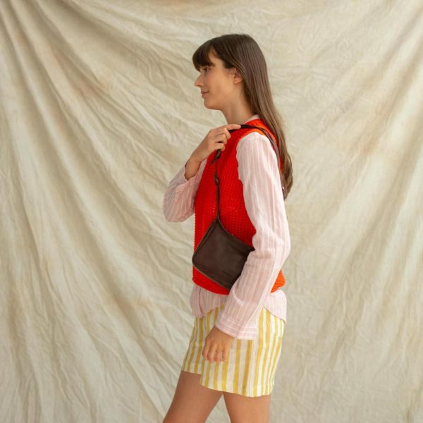It is made of soft leather or velor, finished with lining and nice trimming that emphasizes its shape. It has two inside pockets – perfect for all the most important items of yours. It is zippered and has comfortable, adjustable straps. Beatrice looks great while hung over the shoulder or worn crossbody. It is universal and will fit both a jacket and everyday ankle boots or sneakers, as well as an elegant coat and high boots.